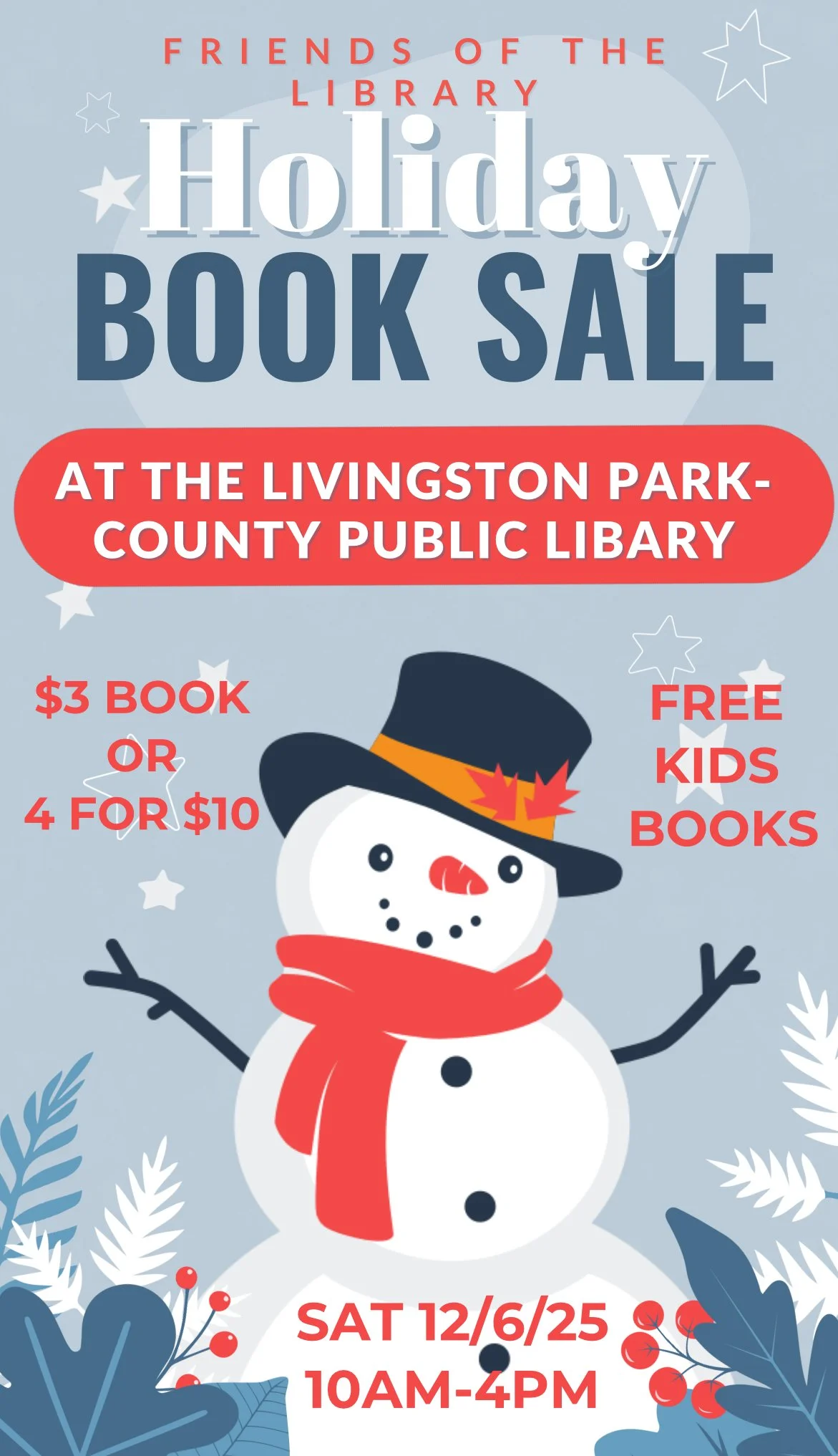 The holiday book sale is one way that the Friends of Livingston-Park County Public Library raises funds to support programming and preservation of the Livingston-Park County Public Library. All proceeds from this event benefit the library by providing enhanced services and resources not funded by tax dollars alone.